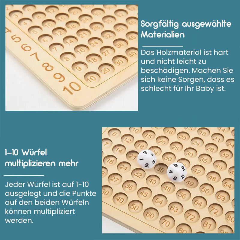 Различни математически дейности: Можете да извършвате различни математически упражнения с помощта на игри като ритмично броене и умножение. Широки възможности за употреба: Дървените таблици за умножение са идеален учебни материал за детски градини, начални училища, детски градини и др. Благодарение на преносимия си размер, те се използват удобно на открито, в класната стая и у дома.