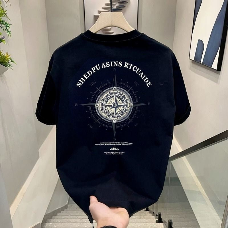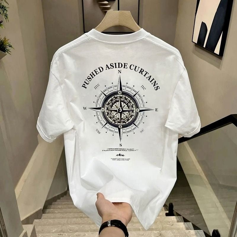ДВУСТРАНЕН ПРИНТ: Открийте уникален стил с контрастиращи размери на принта на компаса отпред и отзад. Минималистичното лого на гърдите придава фин чар, докато смелият графичен принт на гърба прави ярко изявление в стила на уличното облекло.