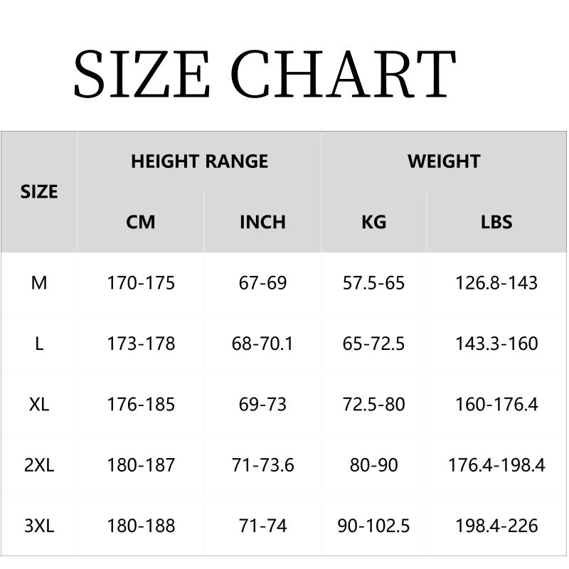 Преди да поръчате, проверете таблицата с размери, за да сте сигурни, че размерът е подходящ.
