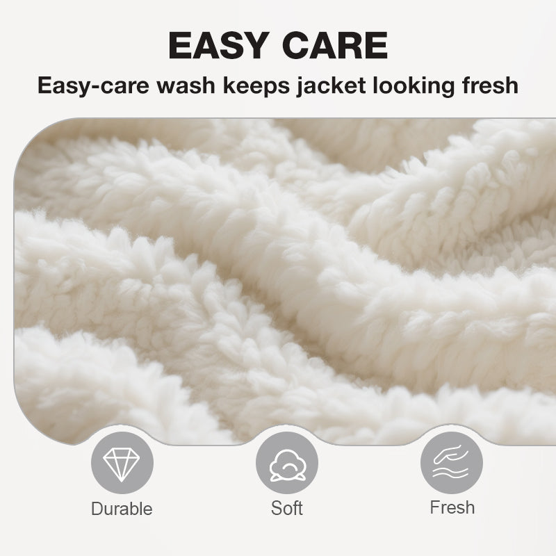 МЕКА ПОДПЛЪТКА - Подплатена с мека изкуствена шерпа, тази яке е мека на допир и осигурява нежна топлина. Уютна в по-хладните дни, без да добавя обем, тя ви осигурява комфорт през целия ден. Интериорът добавя привлекателен акцент, който съчетава топлина с ежедневен, небрежен стил.