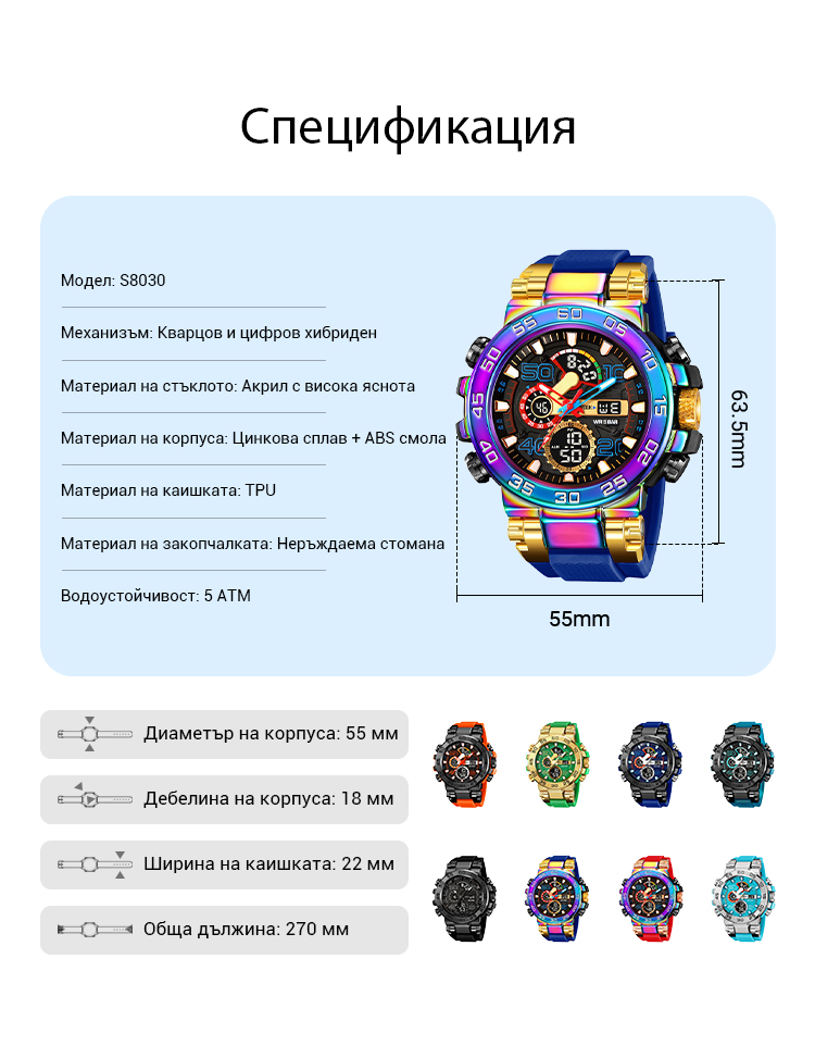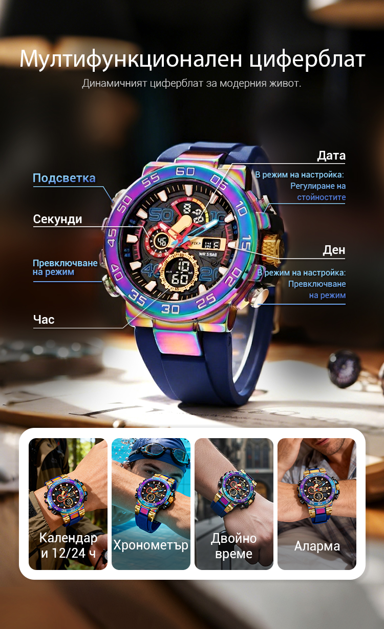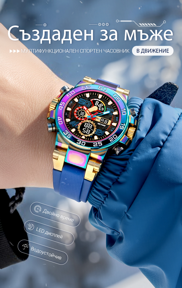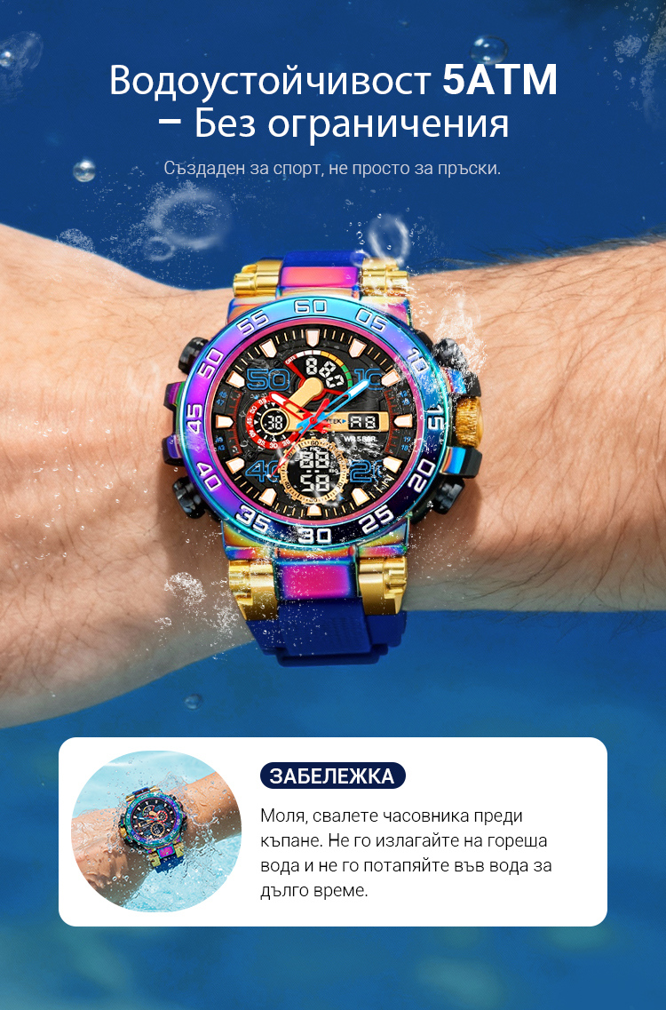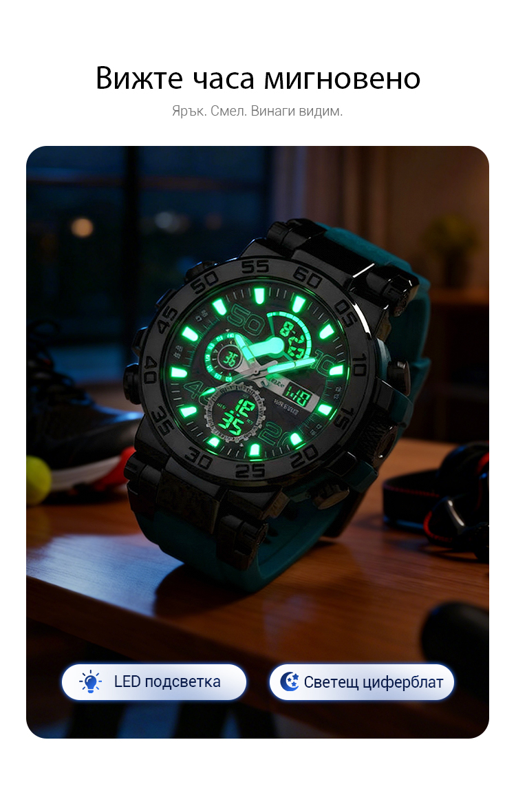 ⌚Водоустойчив, многофункционален LED цифров часовник