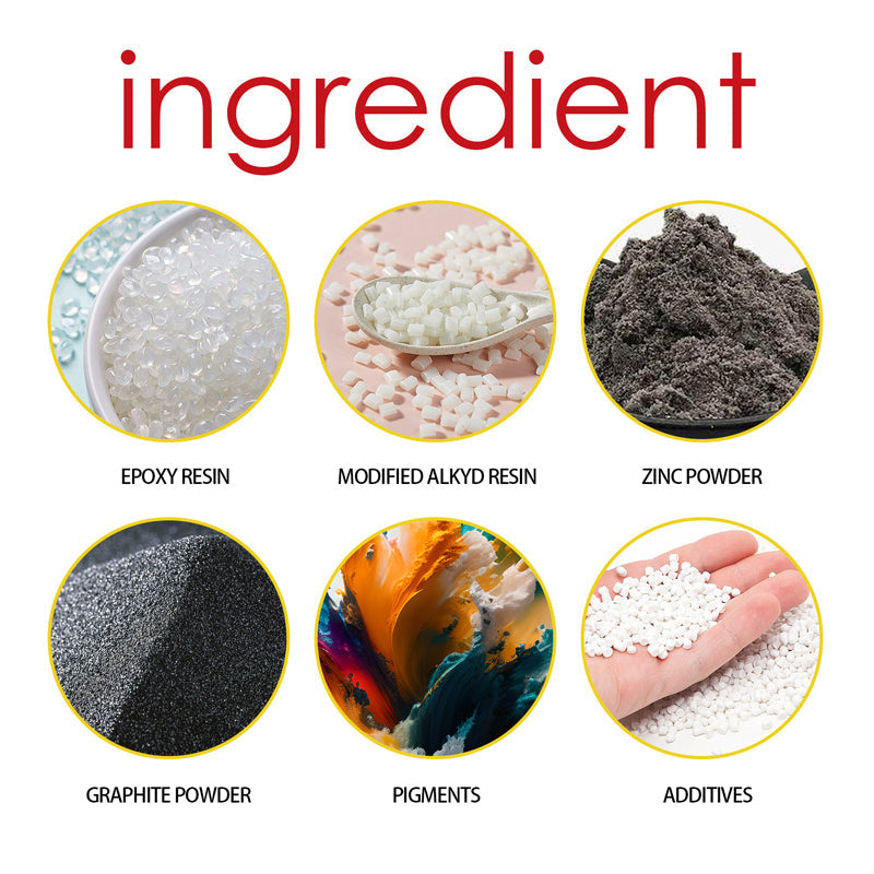 Съставки: Епоксидна смола, модифицирана алкидна смола, цинков прах, графитен прах, пигменти, добавки.