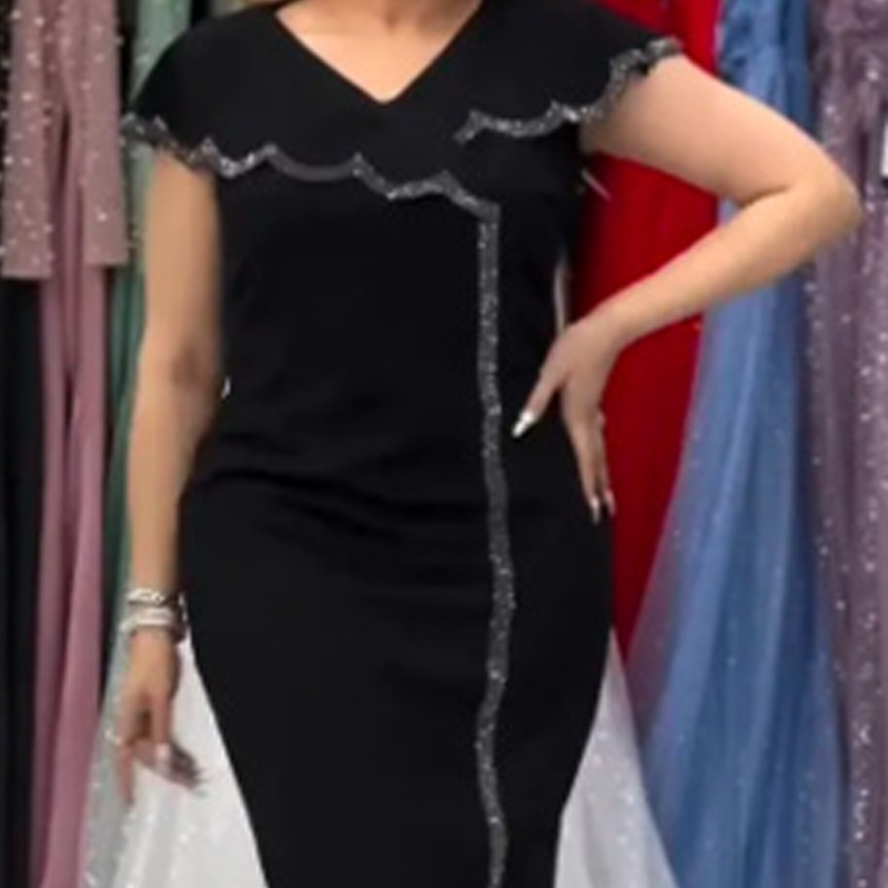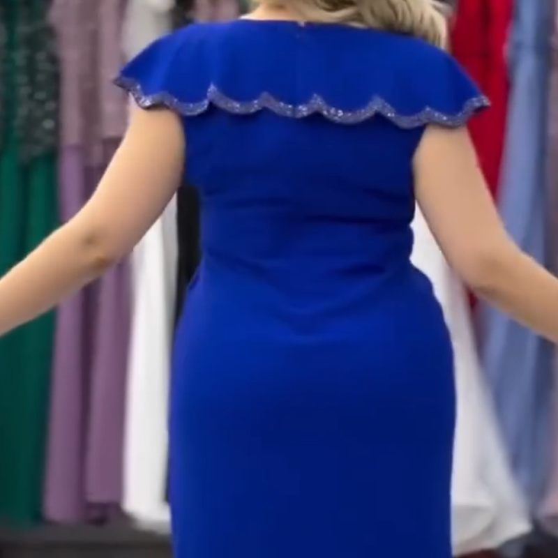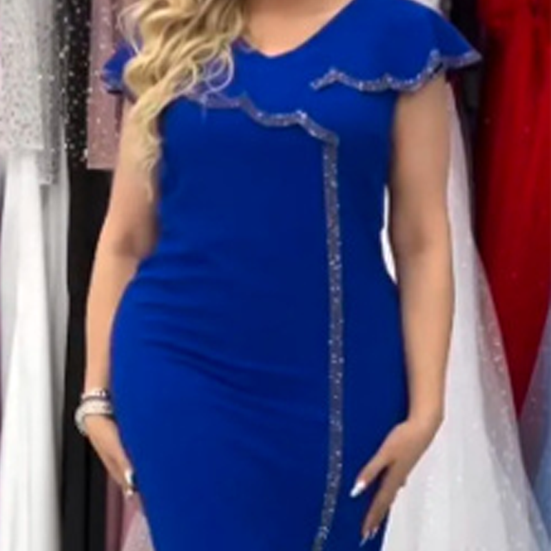 1 * Дамска рокля с V-образно деколте и къси ръкави в един цвят