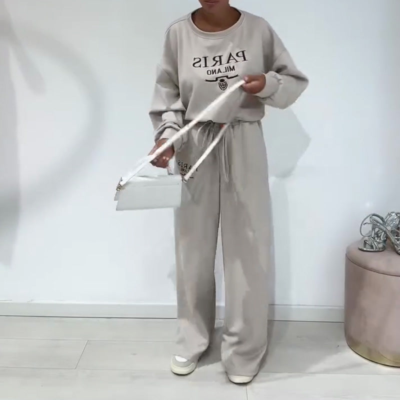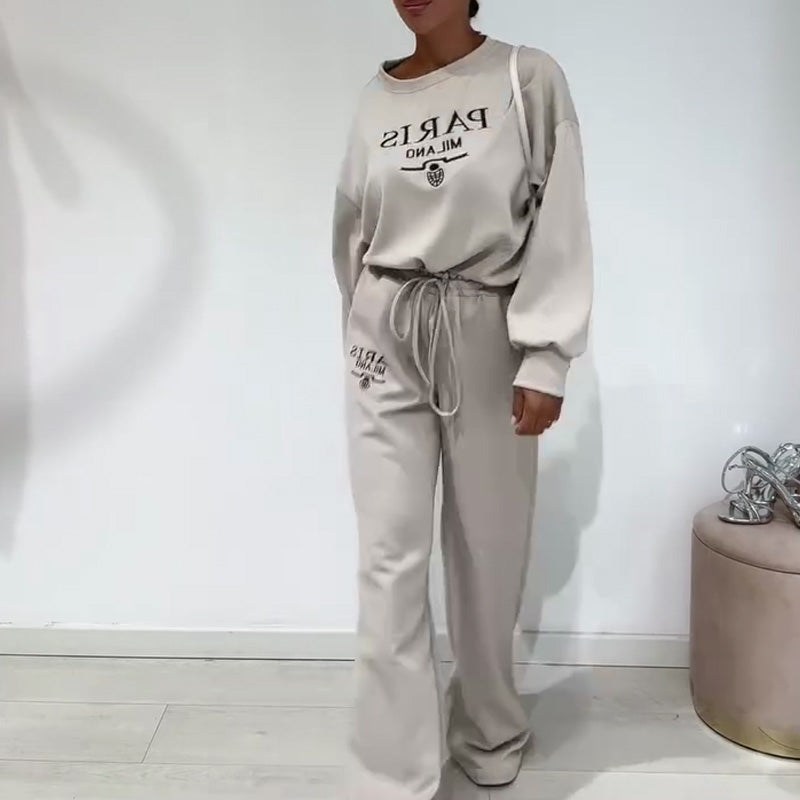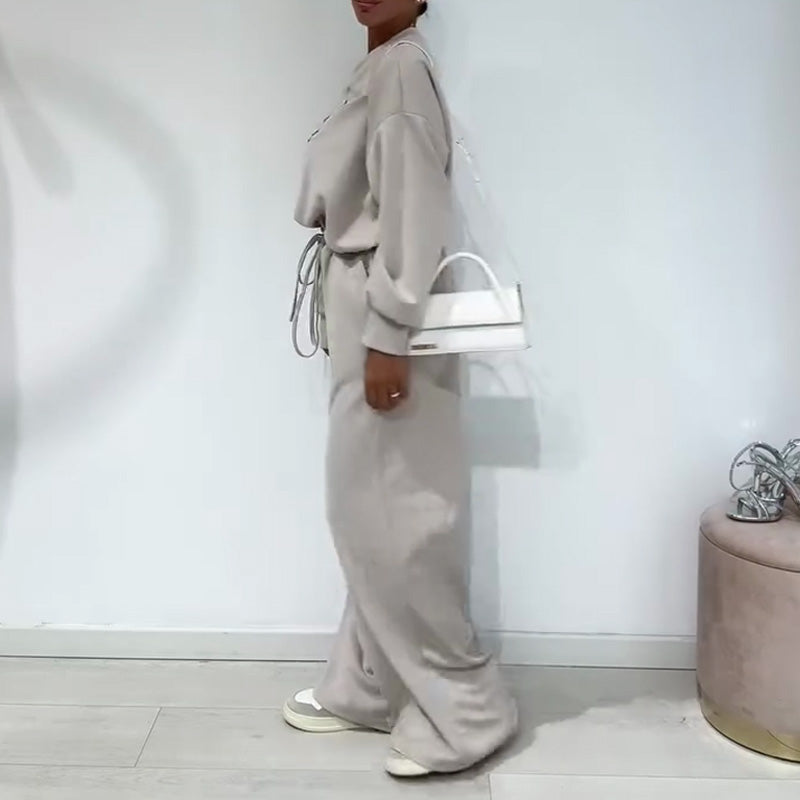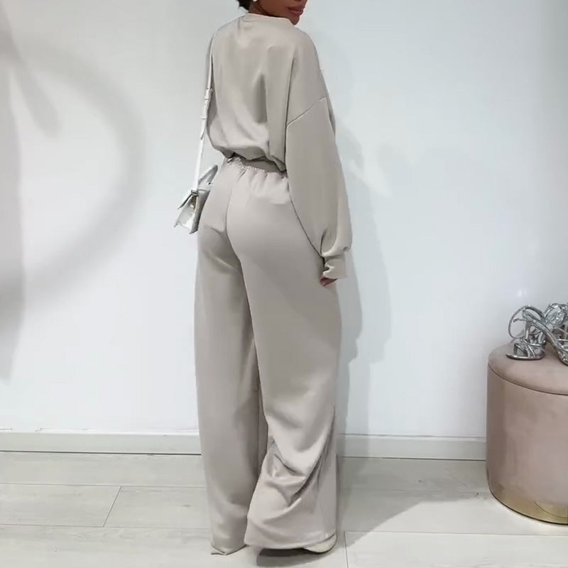 БЕЗУПРЕЧЕН СТИЛ ЗА ВСЕКИ ДЕН – Създаден за съвременен комфорт и простота, този комплект от блуза и панталони съчетава свободна кройка с елегантна силует, създавайки универсален вид за отдих, поръчки или неформални излизания.