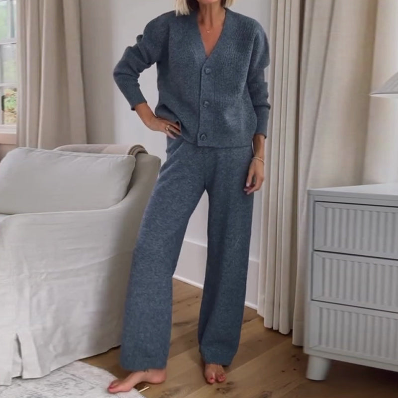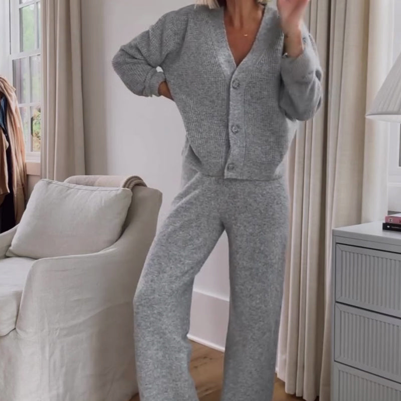 Включено в комплекта: 1 * Дамски удобен кардиган с V-образно деколте и панталони, комплект от две части