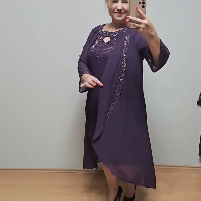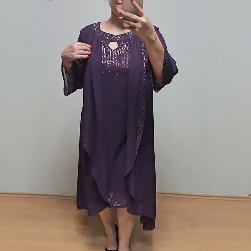💜Елегантна, лека рокля с пайети от 2 части за жени