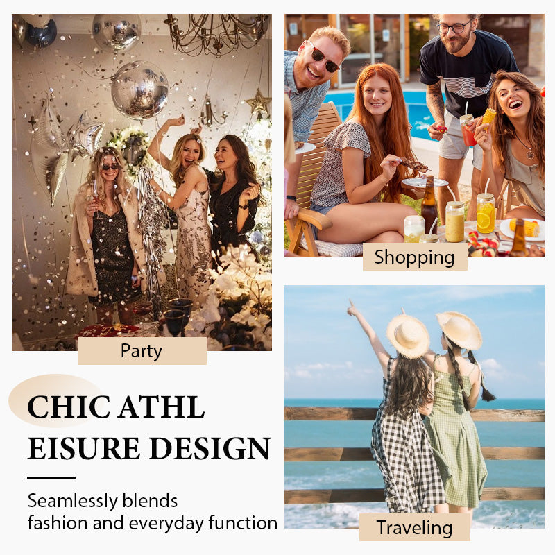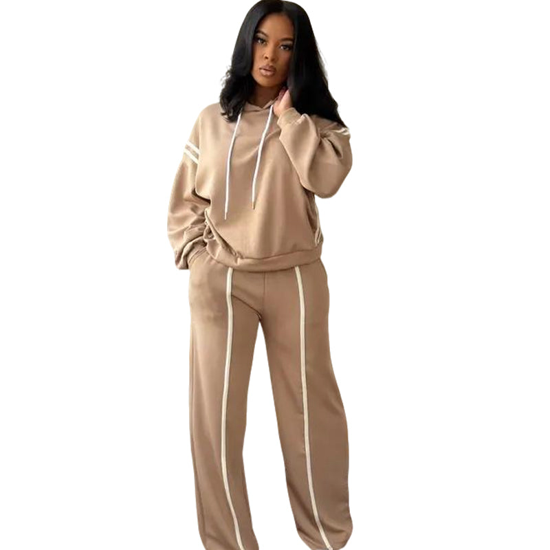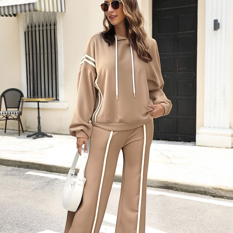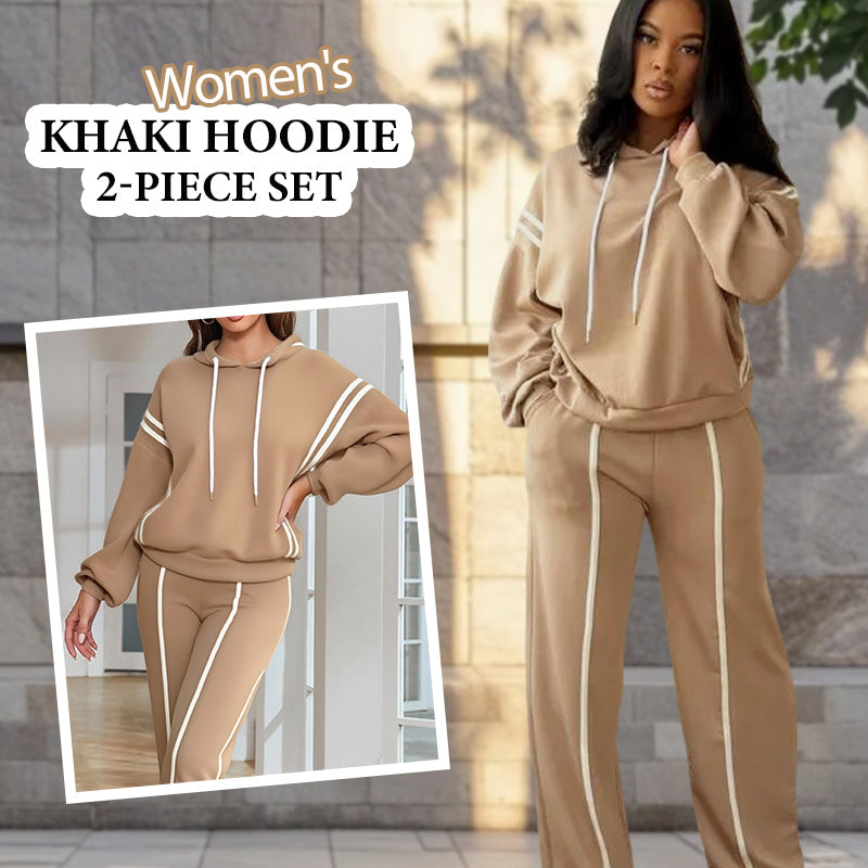 ШИКОВЕН СПОРТЕН ДИЗАЙН - Класическите бели ивици подчертават богатата каки цвят на плата, създавайки елегантна, спортна силует. Този комплект е идеален за вършене на поръчки, неформални брънчове или пътуване в стил, съчетавайки безпроблемно мода и функционалност.