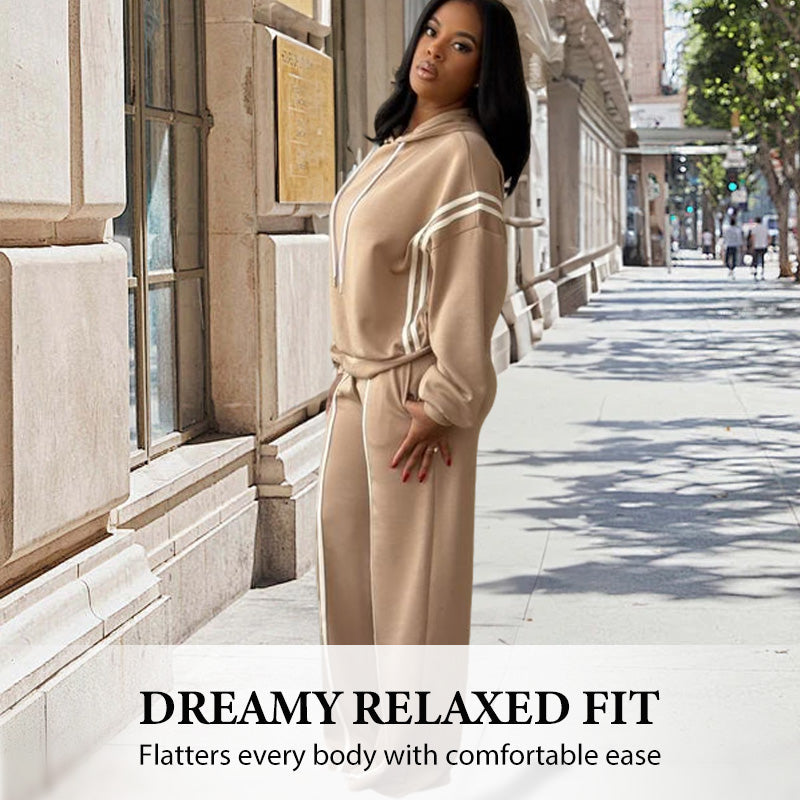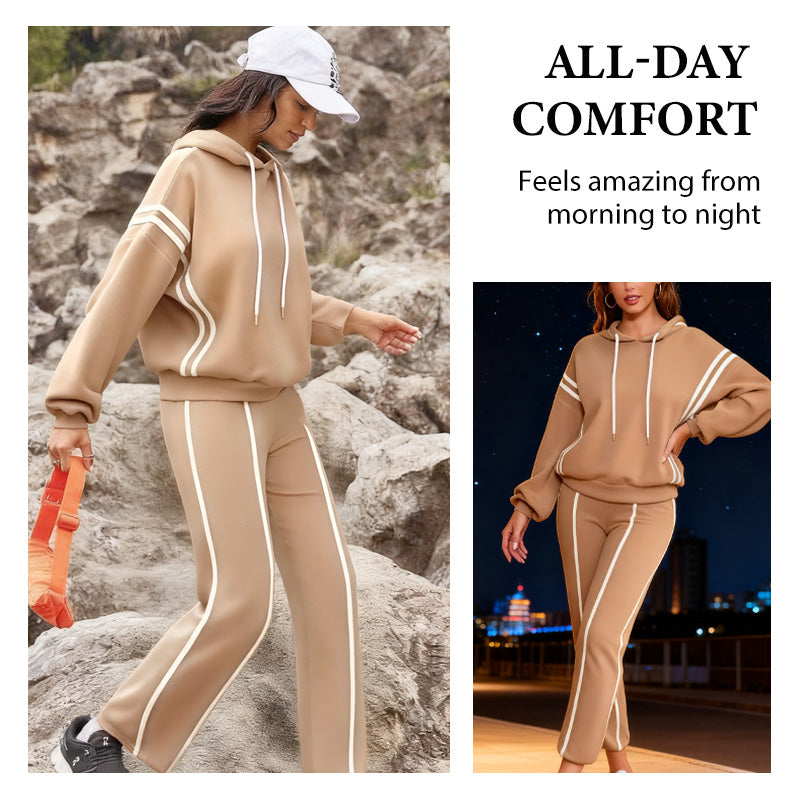 БЕЗУПРЕЧЕН СТИЛ, ПОВИШЕН КОМФОРТ - Този луксозен комплект от две части предефинира понятието „небрежен лукс“. Забравете за старомодните спортни екипи! Съчетаните суитшърт с качулка и панталони с широки крачоли предлагат шик и елегантен вид, който е толкова удобен, колкото любимите ви домашни дрехи.