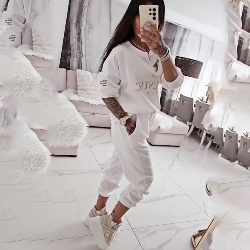 СТИЛЕН ДИЗАЙН НА КОМПЛЕКТА - Този комплект от дамска блуза с дълъг ръкав и панталони предлага свободна кройка с изтънчен дизайн. Координираният му дизайн улеснява създаването на шик и непринуден външен вид, идеален за различни поводи и типове фигура.