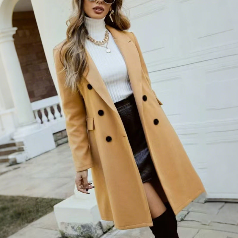 ЕЛЕГАНТЕН СТИЛ СРЕДНА ДЪЛЖИНА - Това палто с дължина до коляното се отличава с вечна, изтънчена кройка. Средната дължина гарантира универсалност, като предлага стил и топлина за различни поводи. Комбинирайте го лесно с рокли или дънки за шик и изтънчен вид.